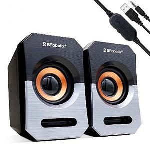 BOCINA ALAMBRICA, STEREO, USB + 3.5 MM, C/CONTROL DE VOLUMEN, ANTIDESLIZANTE, DE ESCRITORIO, P/PC/LAPTOP, NEGRO/PLATA, BROBOTIX